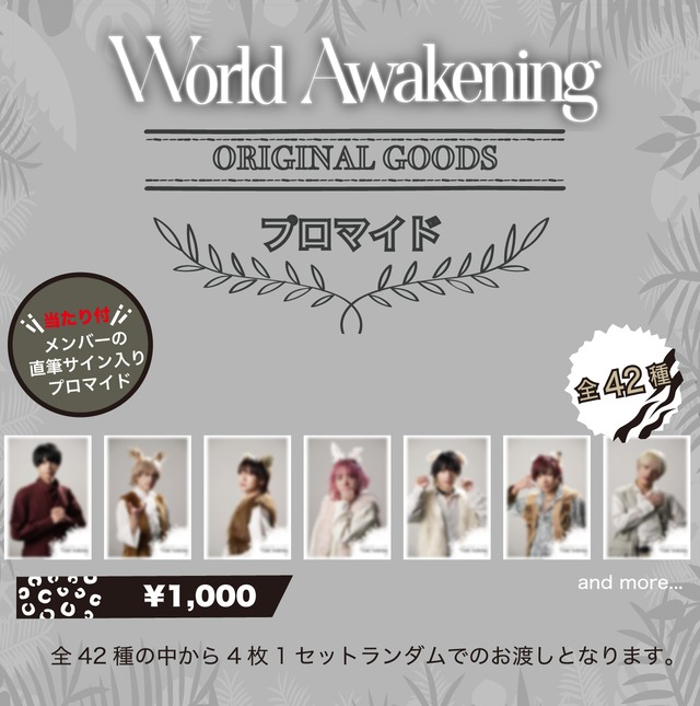 Highspec Ba【Z∞】Ka ミュージカル公演 「World Awakening」オリジナルグッズ ランダムプロマイド4枚 / 1セット 当たり付!メンバーの直筆サイン入り 全42種の中から4枚1セットとなります。 SIZE:L版 対面でお届けし、受領印をいただく「レターパックプラス(追跡番号あり)」と、郵便受けへお届けする「レターパックライト(追跡番号あり)」「スマートレター(追跡番号なし)」の選択を頂けます。 ※Tシャツ等他商品とご購入の際はのご購入は「レターパックライト」「レターパックプラス」の選択必須。 ※スマートレターは追跡サービスはありません。追跡サービスが必要な場合は、レターパックを選択して下さい。 ※一度購入いただいた商品のキャンセルは出来ません。ご注意ください。 ※ご入金の確認が出来てからの発注となります。 ※迷惑メールフィルターを設定している方は「@foursound.net」の受信設定をお願い致します。