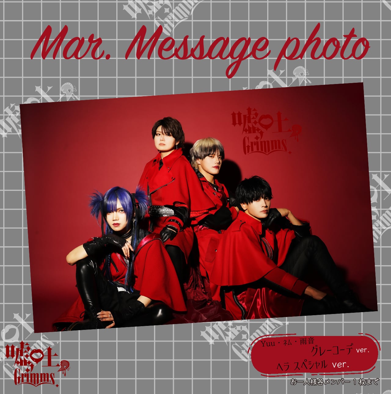 嘘吐Grimms。がアナタだけのメッセージ入りオリジナル画像をお届け致します。